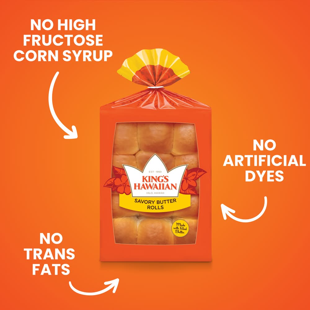 • Flavor: Savory butter • King's Hawaiian Bakery West, Inc, 19161 Harborgate Way,Torrance,CA,90501 • Packaging: Reusable