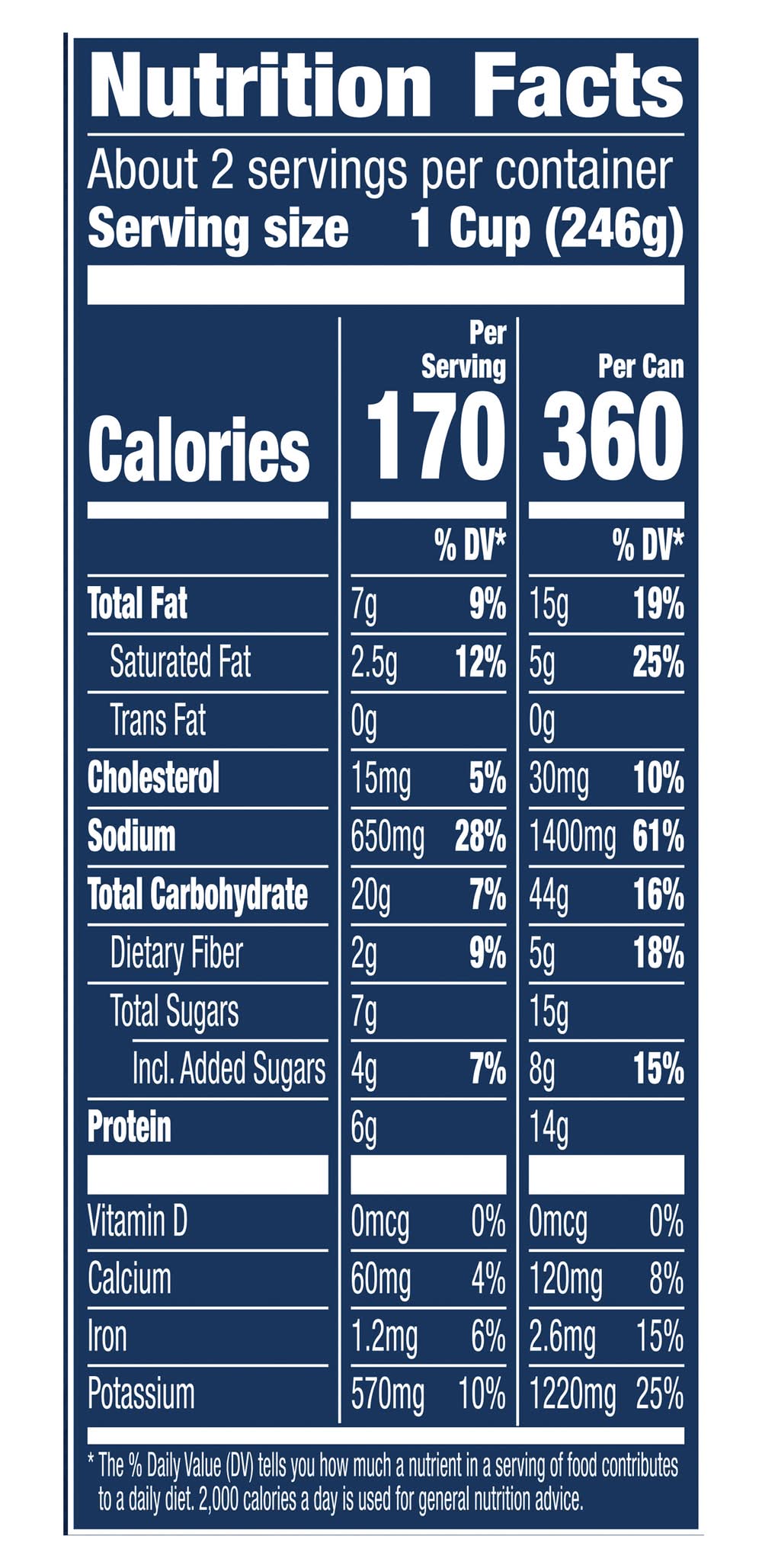 Ready to serve (do not add water). stove top: heat in saucepan over medium heat. microwave: heat in covered microwavable bowl on high 2-4 min. careful - leave in microwave 1 min, stir. refrigerate leftovers. best if used by date on can end.