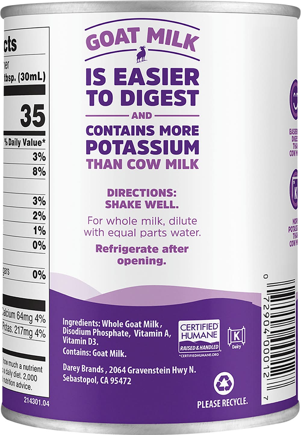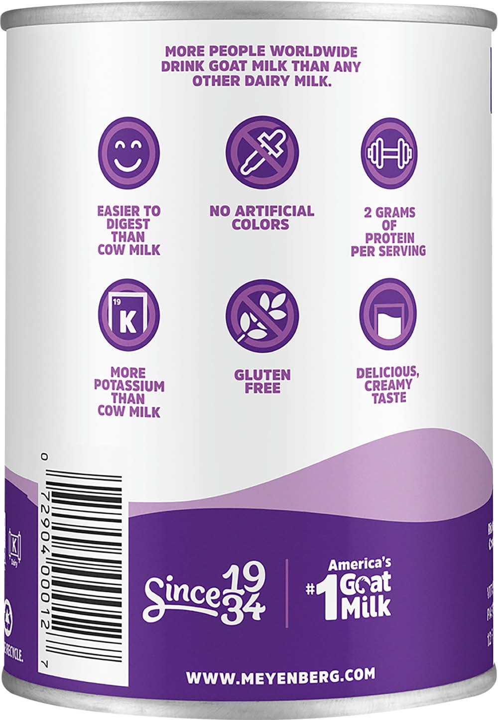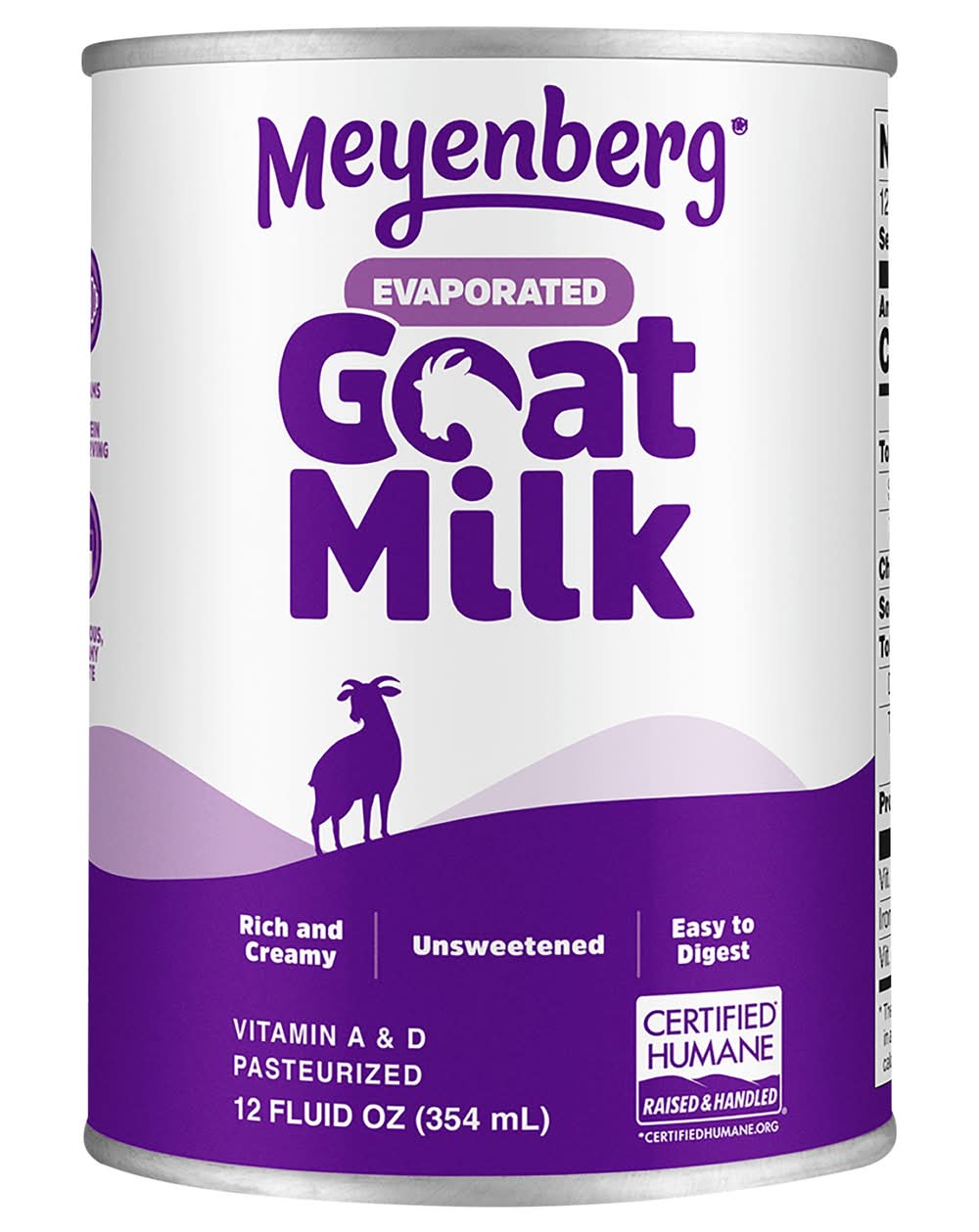 Goat Milk, Evaporated • Meyenberg, PO Box 934 Turlock, CA 95381 • Packaging: Reusable