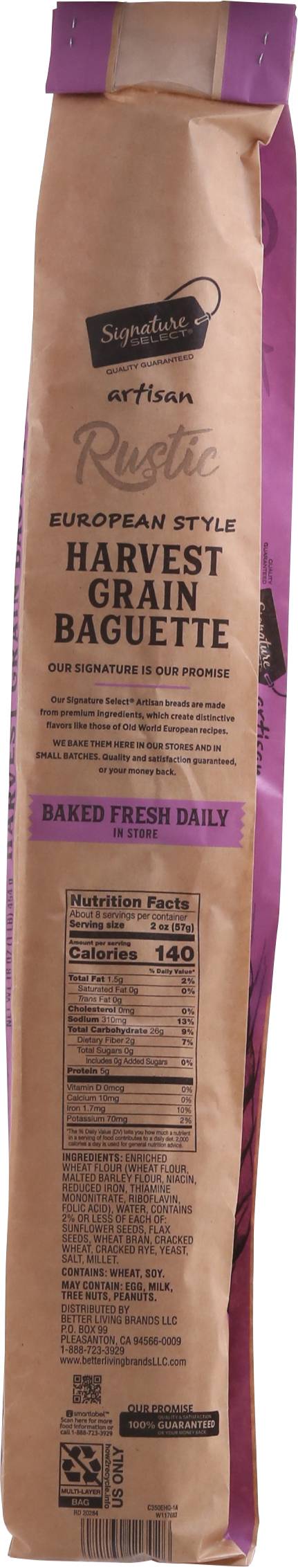 Baguette, Harvest Grain, European Style • Number of servings: 8 • Better Living Brands LLC, Pleasanton, CA • Packaging: Reusable
