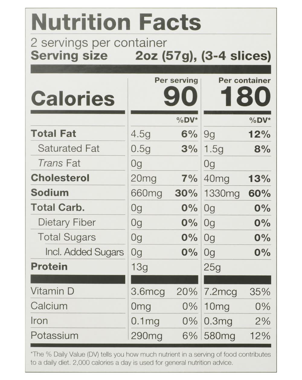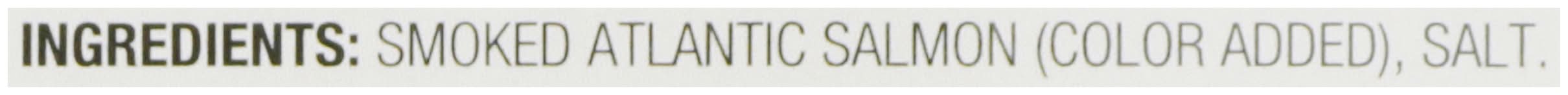Ingredients: Smoked Atlantic Salmon (Color Added), Salt Contains: Fish