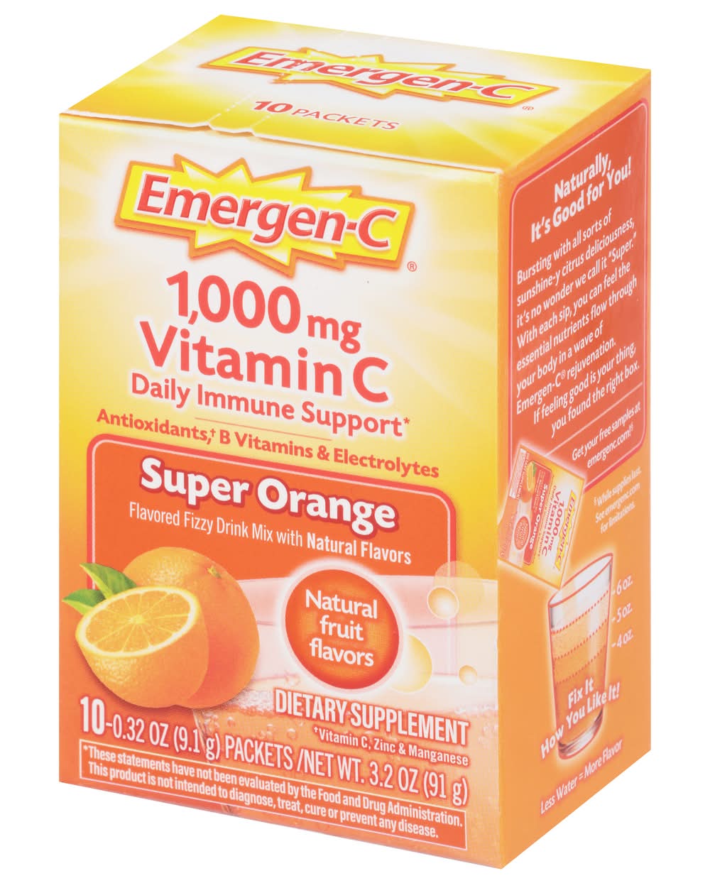 Emergen-C Vitamin C Fizzy Drink Mix Supplement 1000 mg, Super Orange (10 x 0.32 oz)