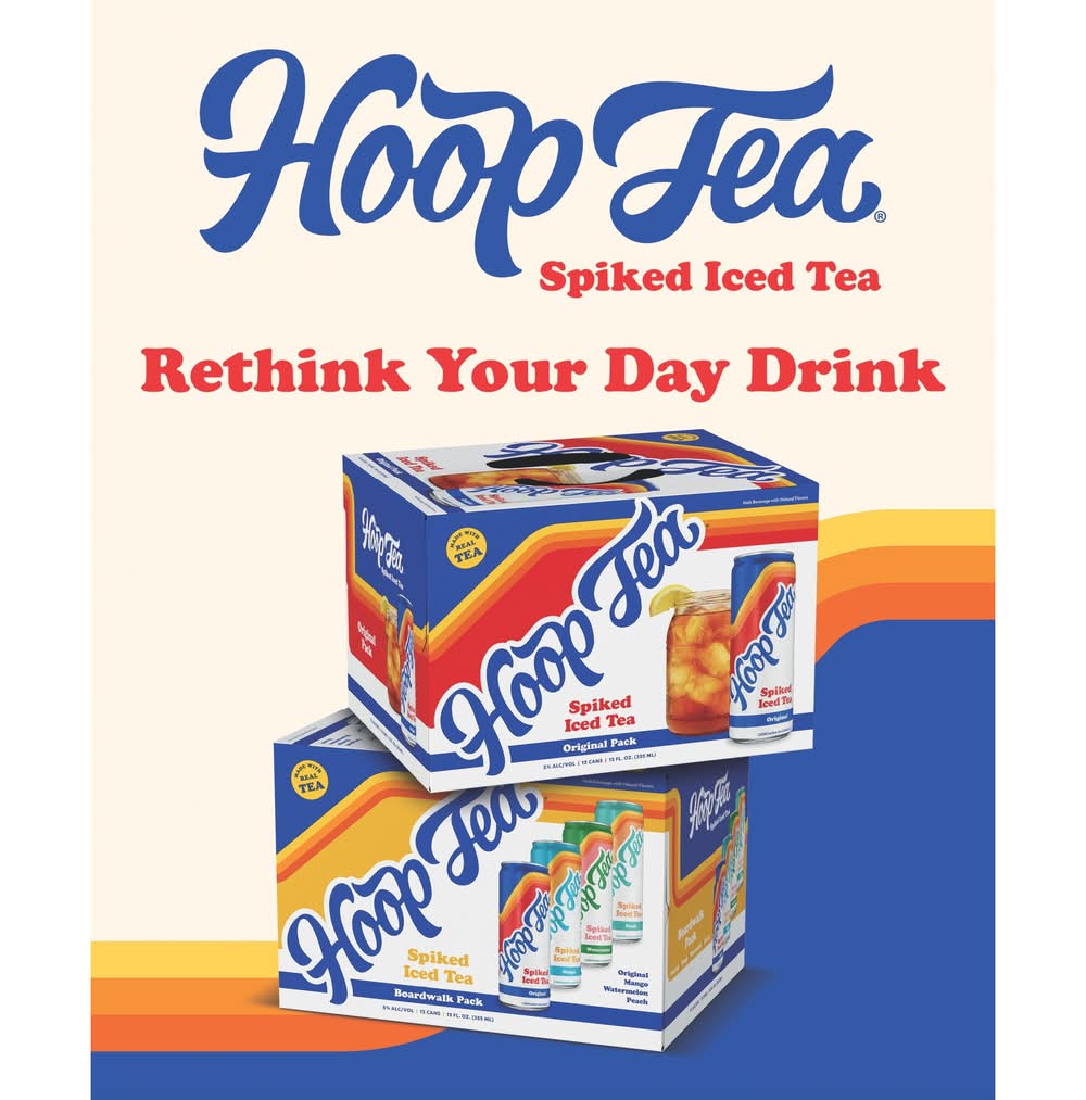 Our original spiked iced tea is a classic flavor you know and love. Pour it over ice with a freshly squeezed lemon and taste the sunshine in every sip. Made with real tea. Born on the Boardwalk: It all started in an old ice cream shop on the boardwalk with a couple of friends who quit their jobs and moved to the beach. We wanted to live a life as free-spirited as our hometown. With some tea leaves, two kegs, and our toes in the sand, we began crafting a little taste of Ocean City sunshine, and from there, Hoop Tea was born. We hope you enjoy drinking it as much as we enjoy making it. Cheers, Danny & Billy - Hoop Tea Founders. Est. 2014. Ocean City, Maryland. Alcohol by volume: 5%