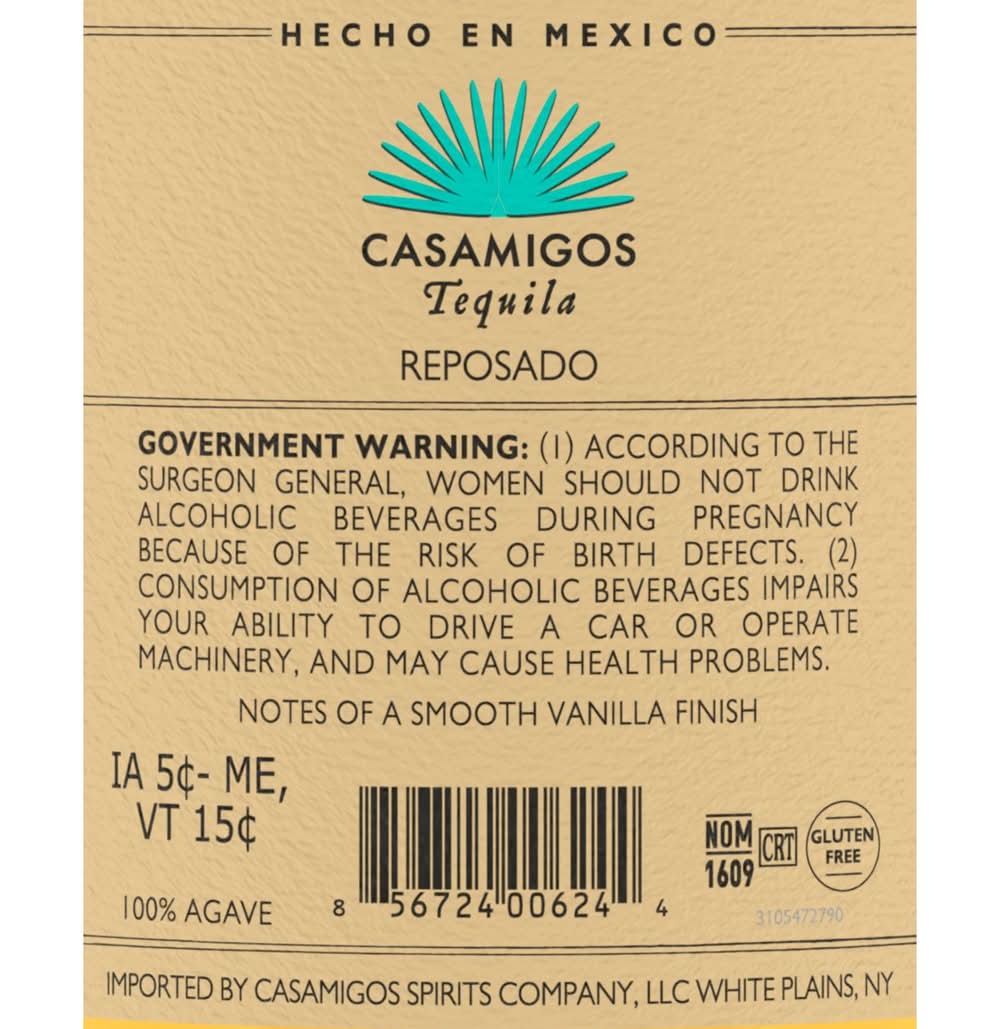 Casamigos Reposado Tequila is a small-batch, ultra-premium spirit crafted from hand-selected Blue Weber agaves. These agaves are cultivated in the Highlands of Jalisco, Mexico, known for its rich red clay and cool climate, contributing to the unique flavor profile of the tequila. The agave piñas are traditionally roasted in brick ovens and undergo an extra-slow fermentation process. The reposado classification of this tequila comes from its aging process, which imparts a soft, slightly oaky profile with hints of caramel and cocoa. The texture is described as silky, and it is noted for its medium to long smooth finish. Casamigos Reposado is versatile, ideal for being served chilled, neat, or on the rocks, and serves as a perfect base for various cocktails, including a classic margarita or paloma. Alcohol by volume: 40%