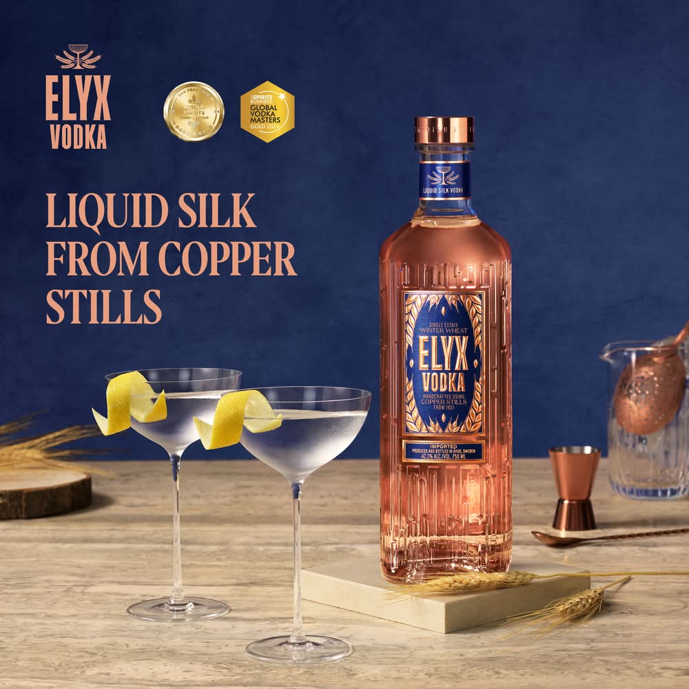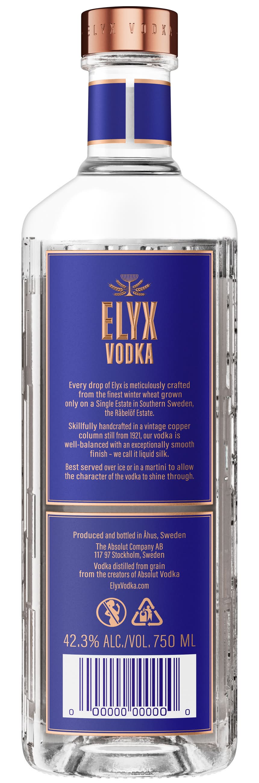 Every drop of Elyx is made from winter wheat grown on a single estate in Southern Sweden. Handcrafted in a vintage copper still, this super-premium vodka is balanced with a smooth finish: think of it as liquid silk. Best served over ice or in a martini to allow the character of the vodka to shine. Alcohol by volume: 42.3%