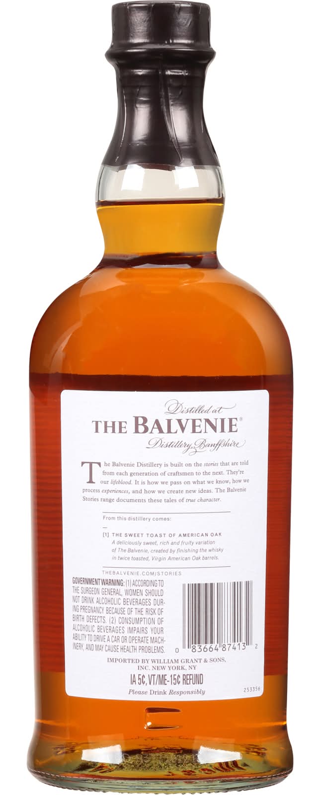 The balvenie stories sweet toast american oak is matured with a finish in toasted virgin oak barrels from kentucky. A delectably complex whisky with notes of candied fruit, coconut and delicate vanilla. • Alcohol by volume: 43% • William Grant & Sons, Inc., New York, NY