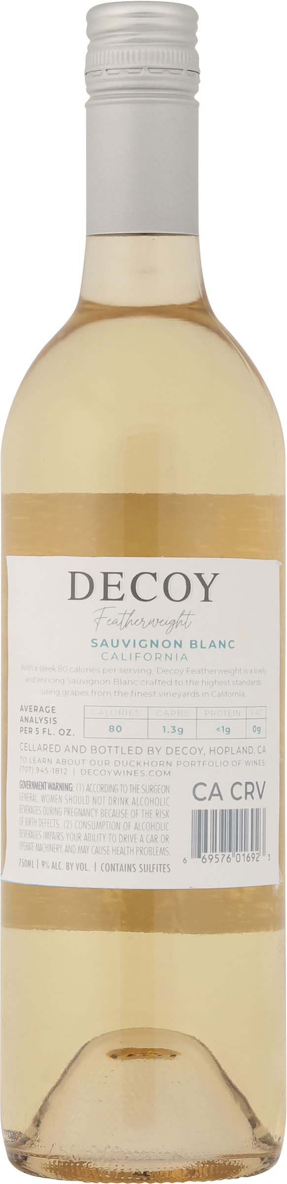 With a sleek 80 calories per serving. Decoy featherweight is a lively and enticing sauvignon Blanc crafted to the highest standards using grapes from the finest. • Alcohol by volume: 9% • 2023