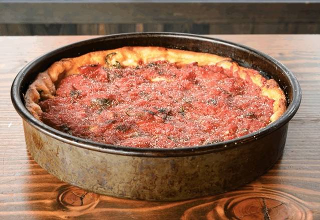 mozzarella and homemade sauce with imported tomatoes topped with sausage (add 20 min to quote times)