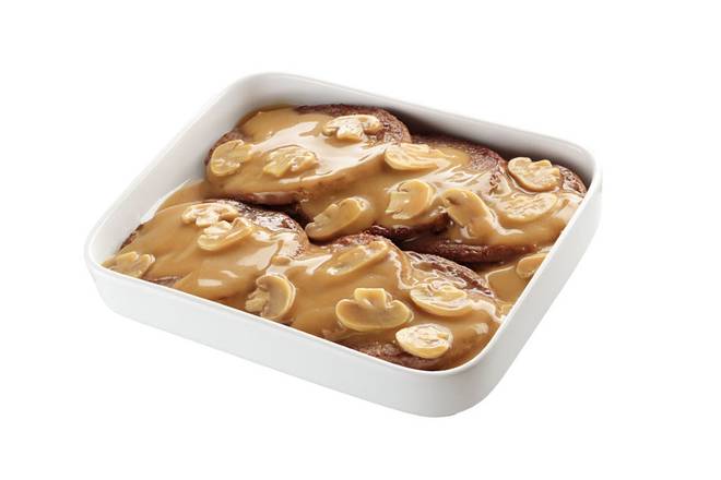 6 beef burger patties smothered with mushroom gravy. Serves 4-6.