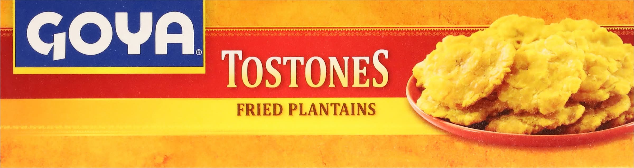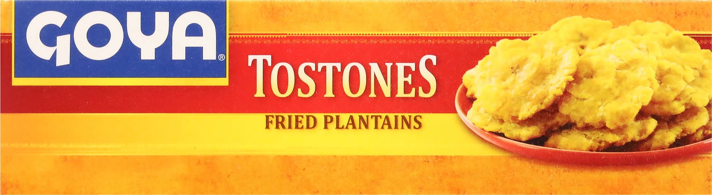 In a skillet or deep fryer at 350 degrees f, preheat enough oil to cover tostones. fry for four minutes or until golden, turning occasionally. drain on paper towel. for best results: soak tostones in salted water for a few minuets before frying. fry from frozen state. we do not recommend cooking product in microwave oven.