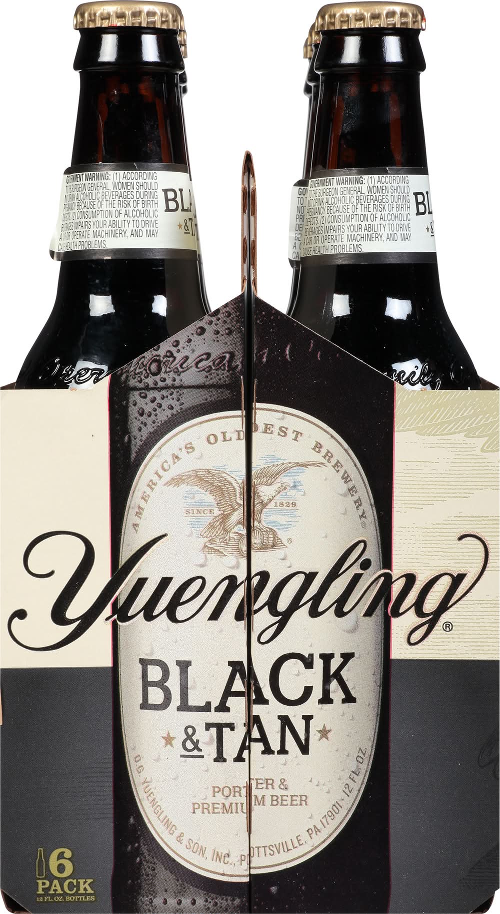 Beer, Black & Tan, 6 Pack • Pack size: 6 • Alcohol by volume: 0.04% • D.g. yuengling & son, inc., 5th & Mahantongo St,Pottsville,PA,17901 • Packaging: Reusable