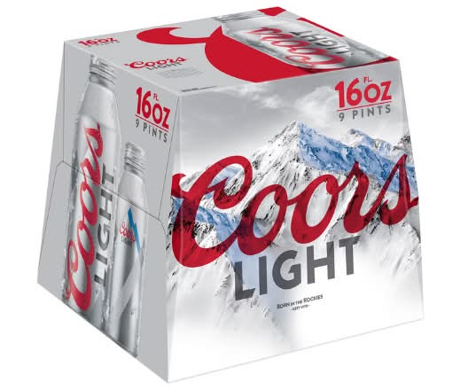 Coors Light 9 Pack 16 oz Aluminium Bottles