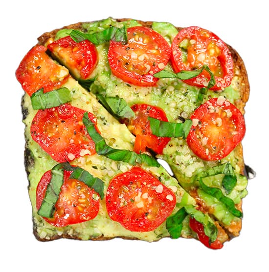 Publican® Quality Sourdough Bread (v), Avocado, Heirloom Tomato, E.V. Olive Oil*, Hemp*, Basil*, Balsamic Glaze*, Black Pepper, Himalayan Pink Salt. (*organic)