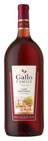 Gallo Family Vineyards Cafe Zinfandel is a wine known for its refreshing, smooth, and lighter style compared to traditional Zinfandel wines. This wine boasts sparkling flavors of strawberry, raspberry, and watermelon, and is best enjoyed when served chilled. It comes in a 1.5L bottle. • Brand: Gallo family • Alcohol by volume: 9% • Medium bodied • Sweet-dry scale: dry • Food pairing: lamb, tomatoes • Suggested serving temperature: 65° F • Suggested glassware: standard red glass