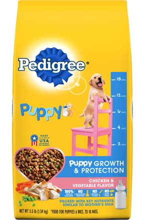 Pedigree Food For Puppies, Chicken & Vegetable Flavor, Growth & Protection, Puppy 4 Pack Lbs