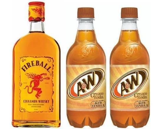 This bundle includes: 1x Fireball Cinnamon Whiskey Plastic Bottle 750mL, 2x A & W Cream Soda made with Aged Vanilla 20 oz Bottle