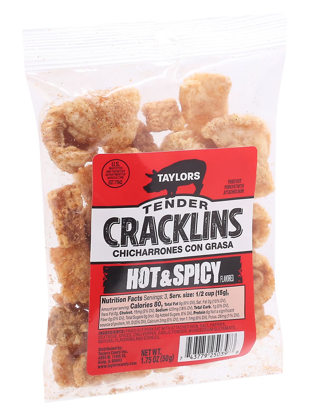 Cracklins, Hot & Spicy Flavored, Tender Number of servings: 3