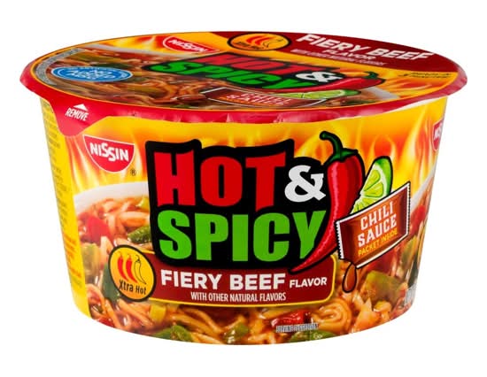Nissin Hot & Spicy Fiery Beef Flavor Ramen Noodle Soup 3.28 oz