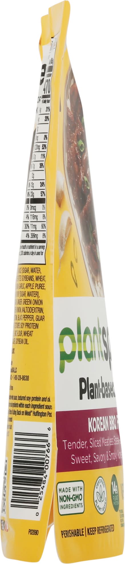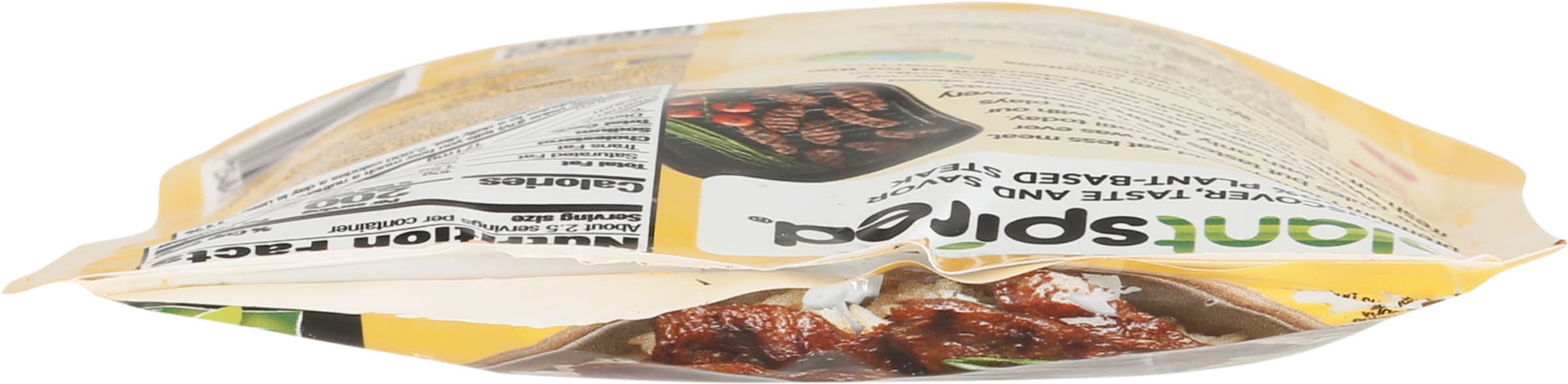 Tender, sliced meatless steak-like strips with a sweet, savory & smoky 14 g plant protein (Per serving see nutrition facts for sodium content). Vegan. Made with Non-GMO ingredients. Charcoal grilled to perfection. Certified plant based. Just heat and serve. Ready in minutes. Discover, taste and savor 100% plant-based steak. We all know we should eat less meat, but no plant-based option was ever tasty or simple enough - until today. We're setting a new standard with our premium Plant spired Steak that plays by the rules but tastes like it breaks every one. Our plant-based steak is perfectly sliced and seasoned with authentic sweet is ready-to-enjoy with all your favorite meals. Delicately char-grilled for that fresh-off-the-grill flavor and tenderness you have to taste to believe. Scan for recipes. Facebook. Instagram. TikTok. Pinterest. YouTube. If everyone in the US went meatless for just one day, we would save: 100 Billion Gallons of Water (Source: The breathtaking effects of cutting back on meat Huffington Post, November 2011; the environmental impacts of going vegetarian for just one day venges, July 2017). 70 Million Gallons of Gas (Source: The breathtaking effects of cutting back on meat Huffington Post, November 2011; the environmental impacts of going vegetarian for just one day vegnews, July 2017). Flavor: Korean bbq