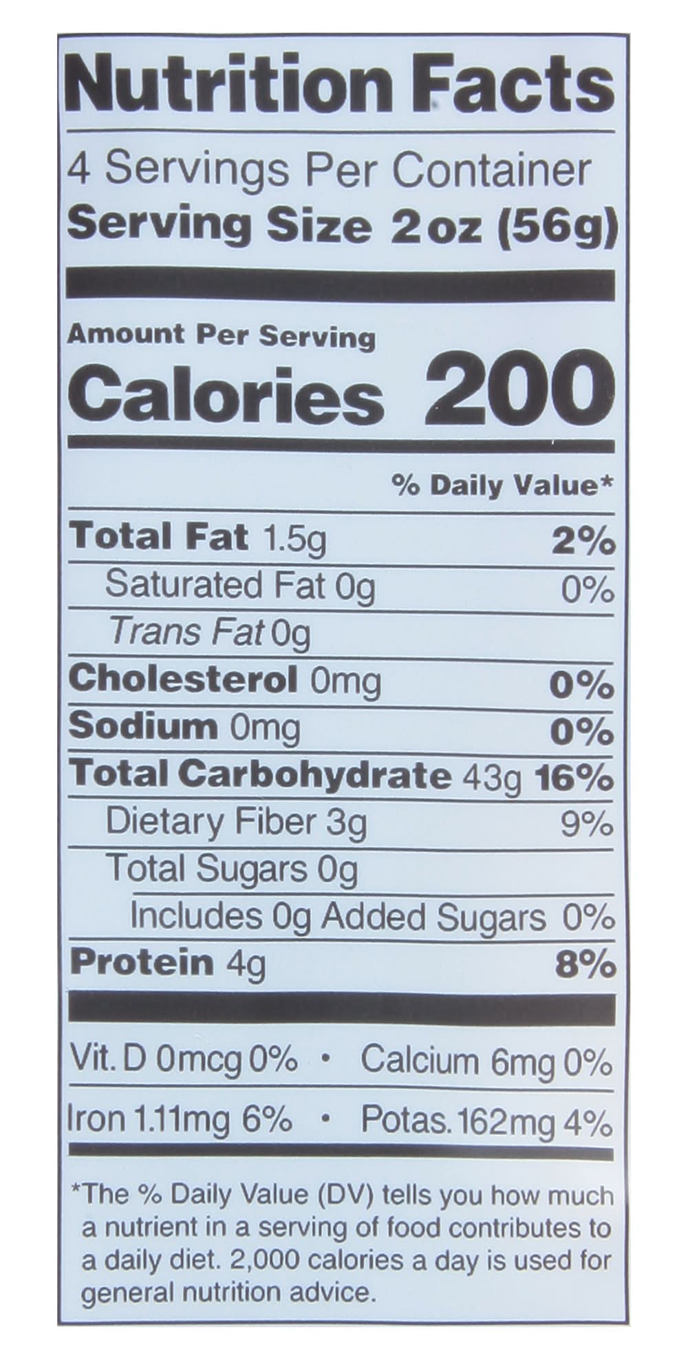 Ingredients: Organic Black Rice, Organic Brown Rice.