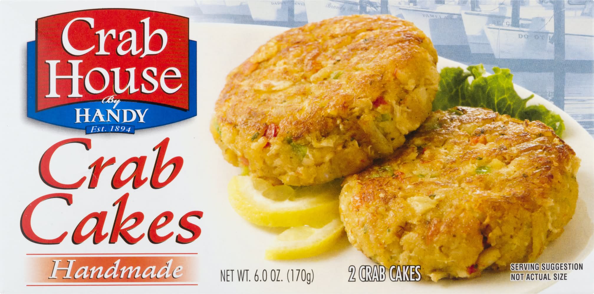 Crab Cakes, Handmade • Number of servings: 2 • Handy Seafood, Salisbury, MD, 21804, Ph: 800-426-3977