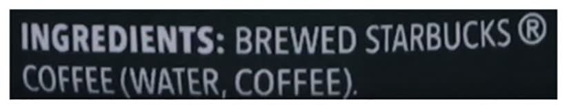 Ingredients: Brewed Starbucks Coffee (Water, Coffee) Contains 120mg of caffeine