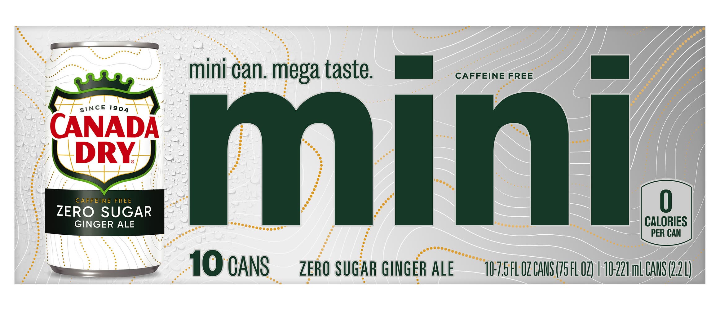 Canada Dry Mini Zero Sugar Ginger Ale Soda (10 x 7.5 fl oz)