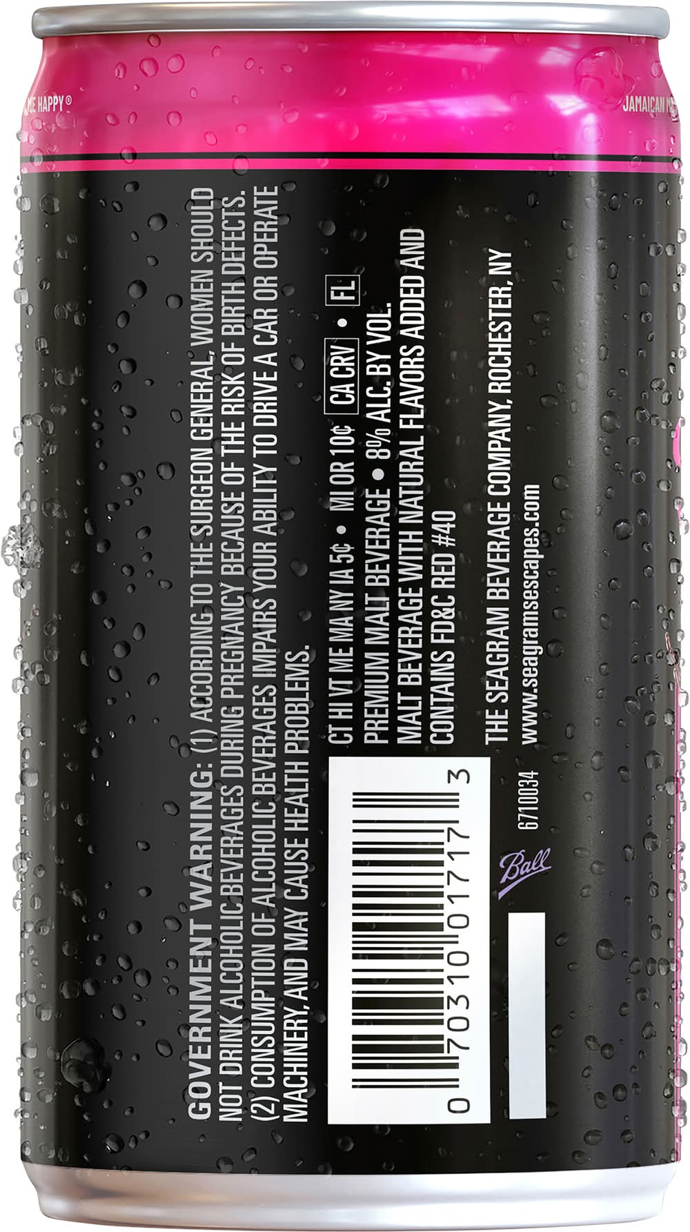 • Flavor: Lemon-strawberry-watermelon-guava • Alcohol by volume: 8% • The Seagram Company, 300 Park Avenue, New York, NY 10022 • Packaging: Reusable