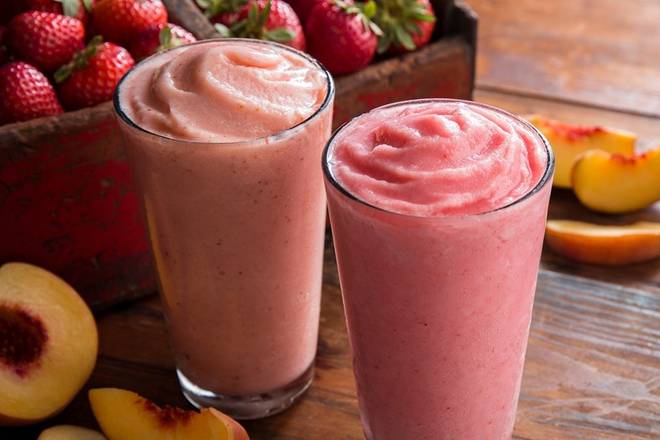 Cranberry juice, pineapple sherbet, peaches, and strawberries.