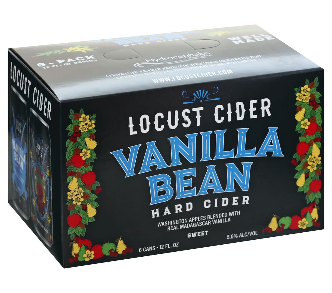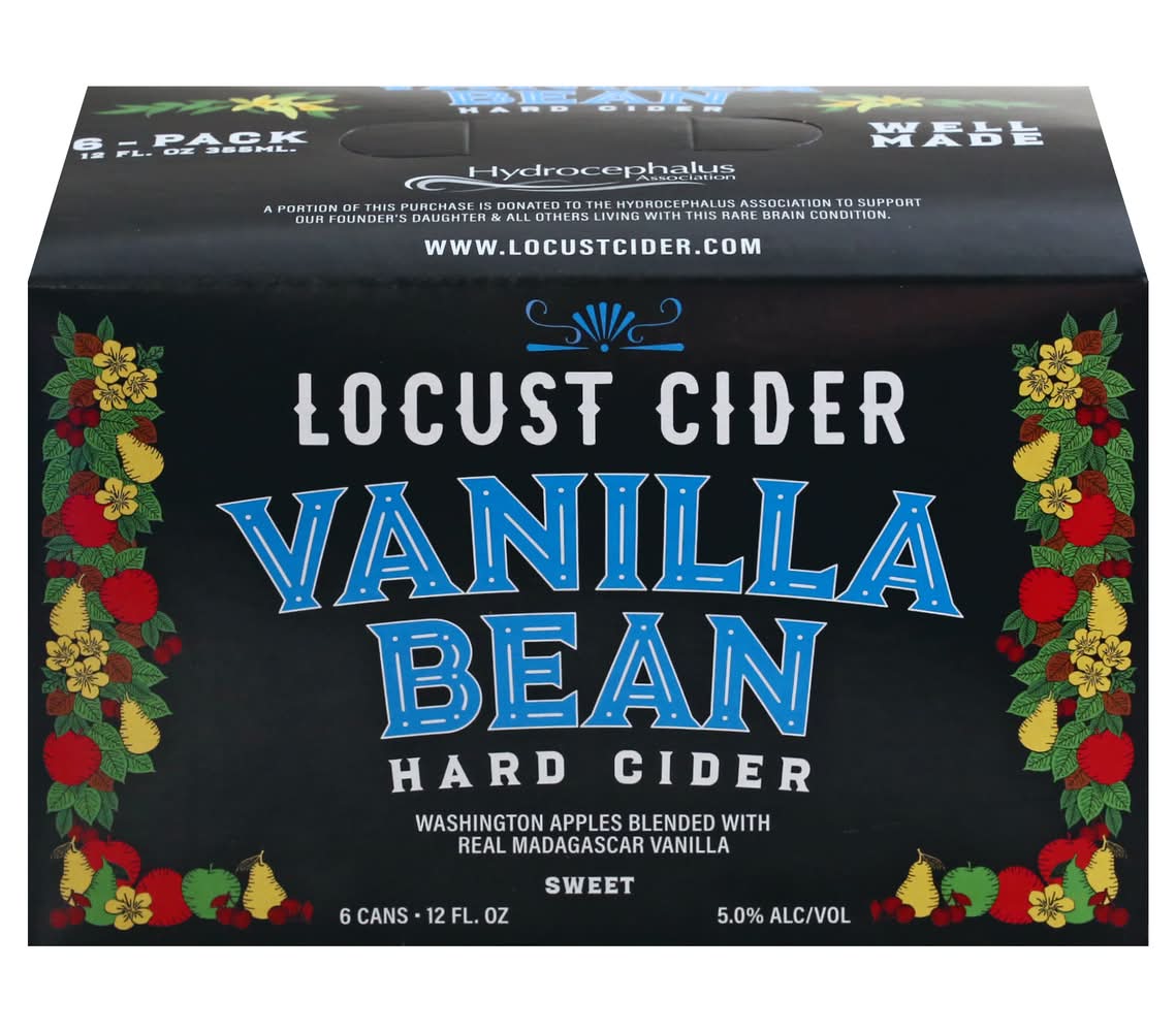 Hard Cider, Vanilla Bean • Brand: Locust cider • Pack size: 6 • gluten-free • Alcohol by volume: 5%