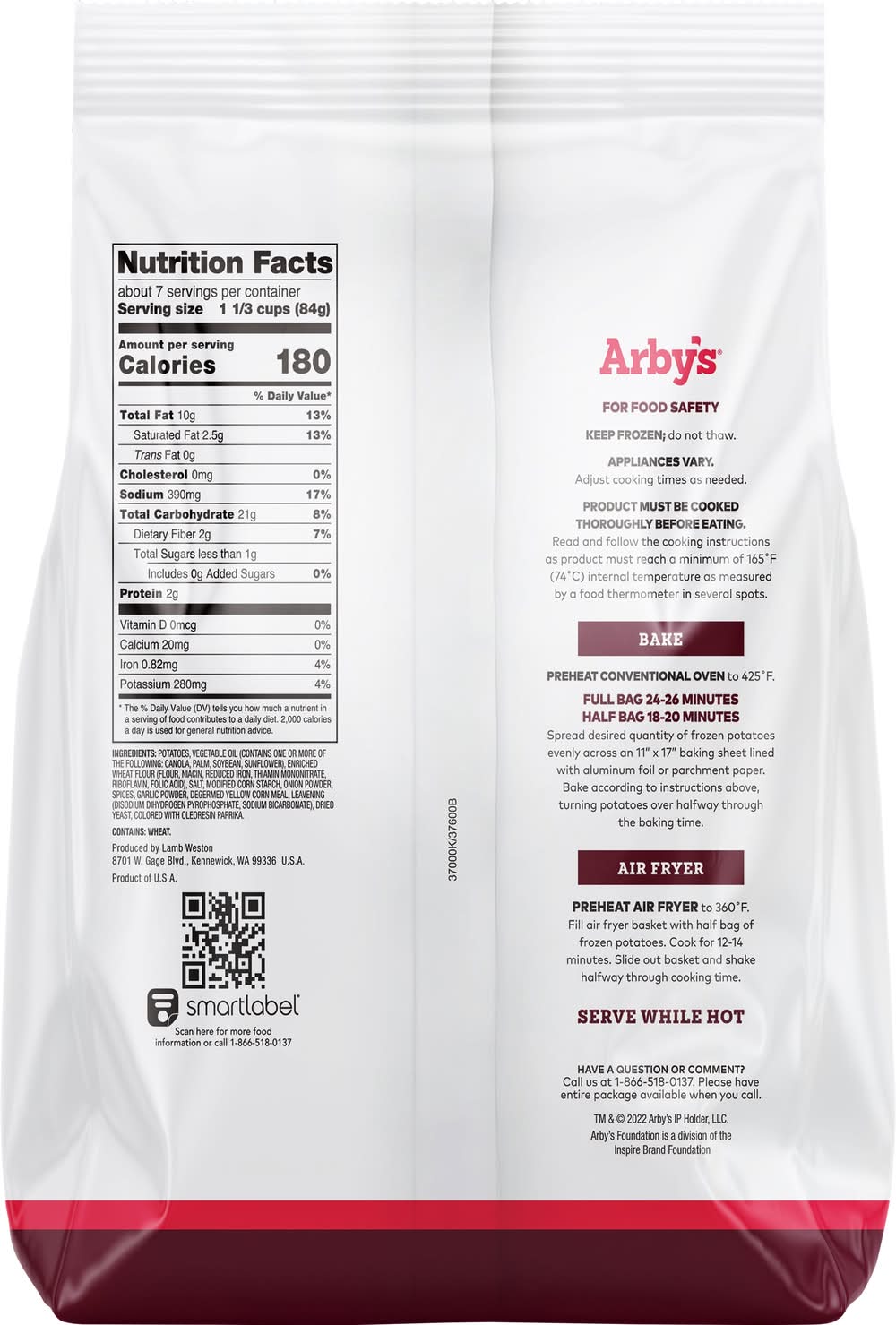 Directions for use: Directions: Serve while hot! Serve fresh and hot from the oven. Enjoy! For Food Safety and Quality: Keep frozen. Do not thaw. Appliances vary. Adjust cooking times as needed. Product must be cooked thoroughly. Internal temperature needs to reach 165 degrees F as measured by a food thermometer in several spots. Read and follow these cooking directions. Bake: Preheat: Preheat oven to 425 degrees F. Bake: Full bag 30 minutes. Half bag 20 minutes. Arrange frozen potatoes in a single layer on an 11 in. x 17 in. baking sheet. Bake according to instructions above desired color and crispness, stirring halfway through cooking time. Keep frozen. Storage recommendation: Keep frozen.