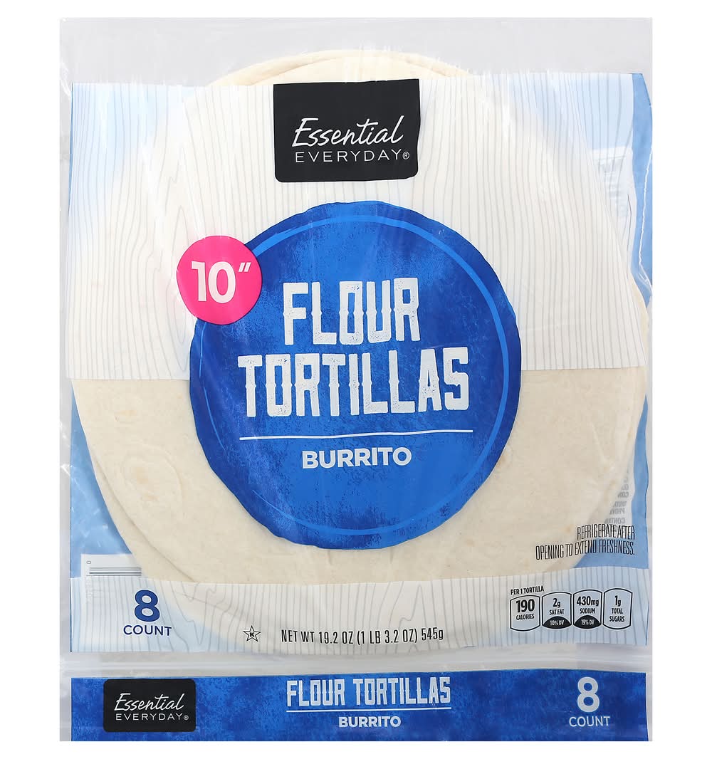 Essential Everyday Burrito Flour Tortillas, 10" (19.2 oz, 8 ct)