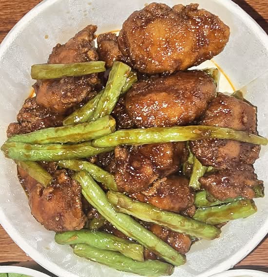 Spicy. Crispy vegan fried chicken, dried chili, sweet orange glaze.