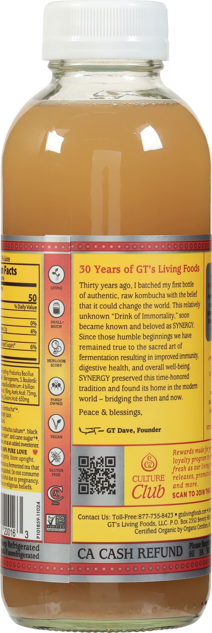 • Brand: Gt's • Flavor: Gingerade • gluten-free, kosher, organic, vegan, GMO-free • Packaging: Reusable