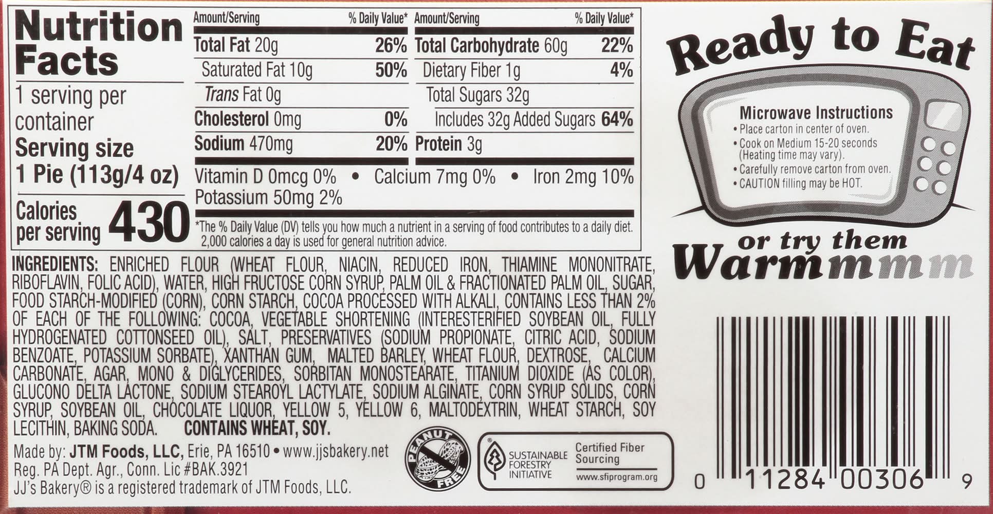 Pie, Chocolate, Lightly Glazed • Brand: Jj's bakery • kosher • Jtm Foods, Llc, Erie, PA, 16510