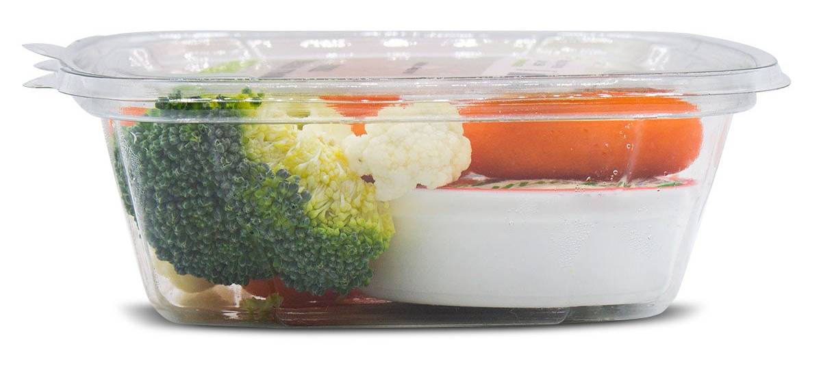 Veggie Tray of carrots, broccoli, cauliflower, and dill vegetable dip