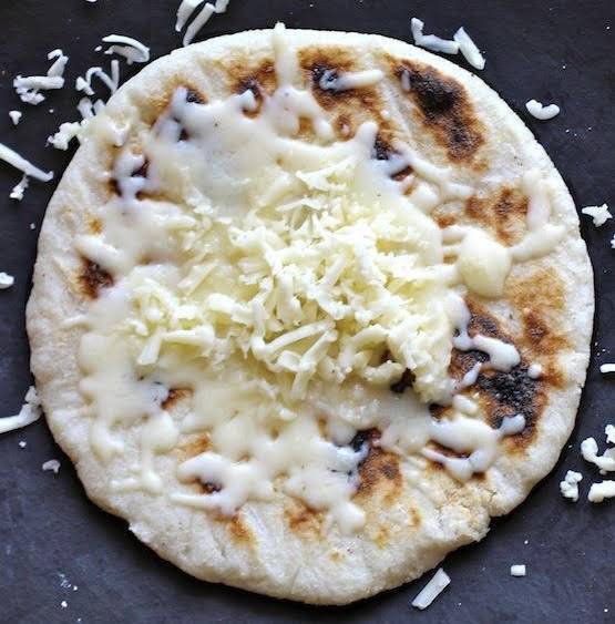 Deliciosa arepa de maiz, con queso encima hecha en casa.