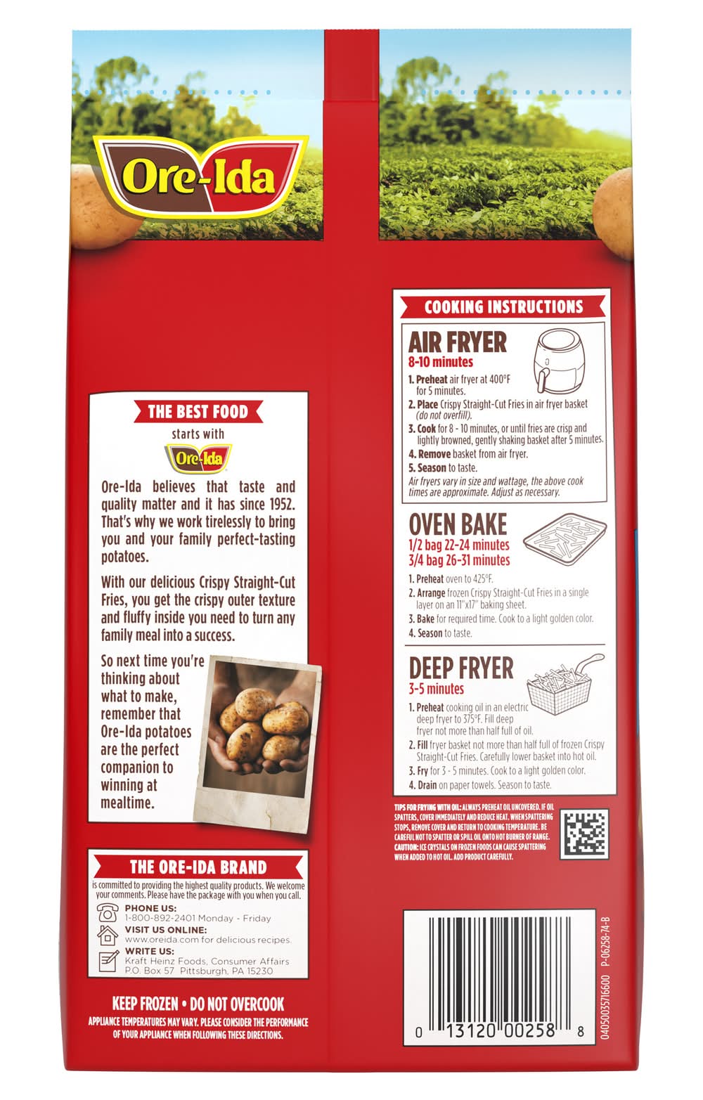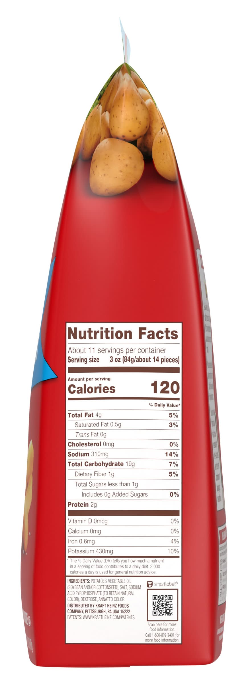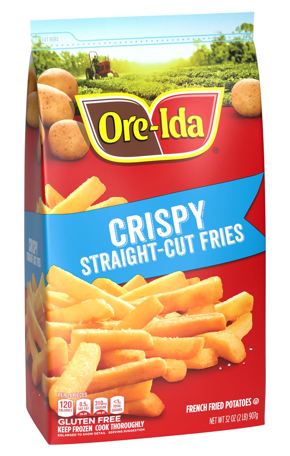 Ore-Ida Golden French Fries makes it easy to enjoy delicious fries at home. Crispy and golden, these Grade A fries are made from freshly peeled, American grown potatoes. These gluten free fries offer a crispy outside with a fluffy inside for the perfect blend of textures to make your next family meal a success. Toss these frozen French fries on a baking sheet to bake them in the oven according to package instructions for perfect golden fries. An American classic, these easy fries are perfect for dipping. Serve up the traditional burger and fries, or get creative with loaded fries topped with cheese and bacon. These oven baked fries come sealed in a 32 ounce bag to help lock in flavor. Your family deserves the highest quality because if it's not Grade A, it's not Ore-Ida! Kraft Heinz Foods Company, Pittsburgh, PA, 15222