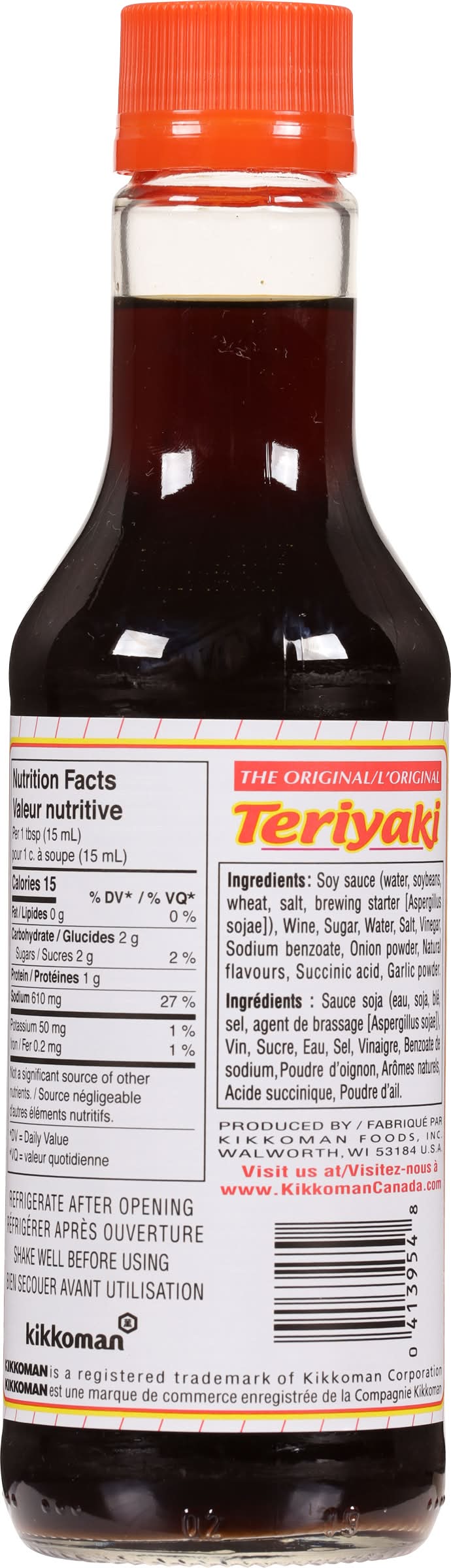 Kikkoman Teriyaki Marinade & Sauce has been setting the standard for teriyaki flavor since 1961. A blend of Kikkoman Traditionally Brewed Soy Sauce, wine, and spices, Kikkoman Teriyaki Marinade & Sauce has the depth of flavor that makes it an ideal marinade or brush-on sauce, right from the bottle. Kikkoman Teriyaki Marinade & Sauce is certified Kosher. Kikkoman Teriyaki Marinade & Sauce is made to the highest standards of quality that consumers have come to expect from Kikkoman. • Flavor: Teriyaki • Kikkoman, Walworth, WI.