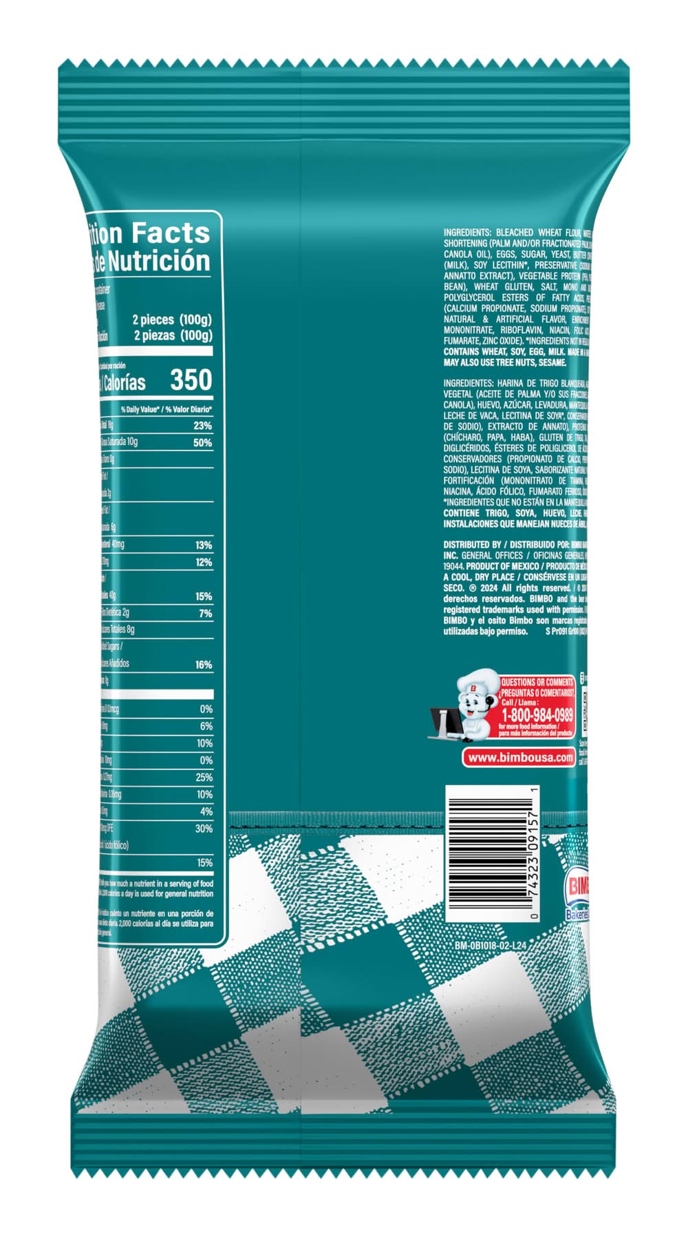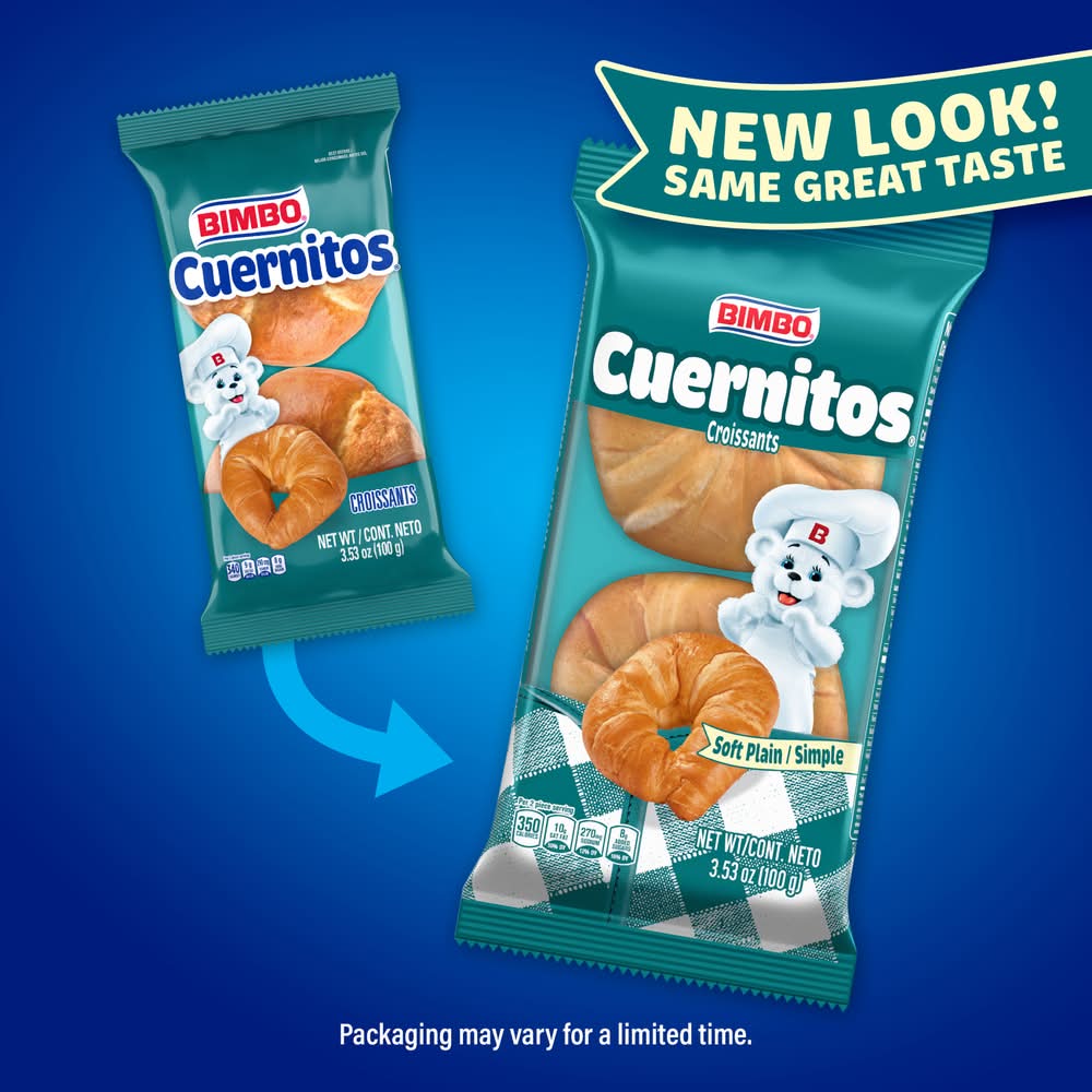 Bimbo Cuernitos Croissants is a product that comes in a serving size of two pieces, containing 340 calories, 9 grams of saturated fat, which is 45% of the daily value, 290 milligrams of sodium, representing 13% of the daily value, and has 8 grams of total sugars Number of servings: 1