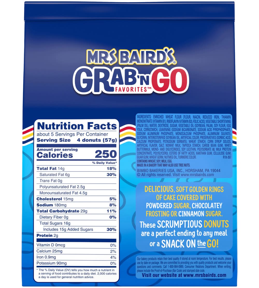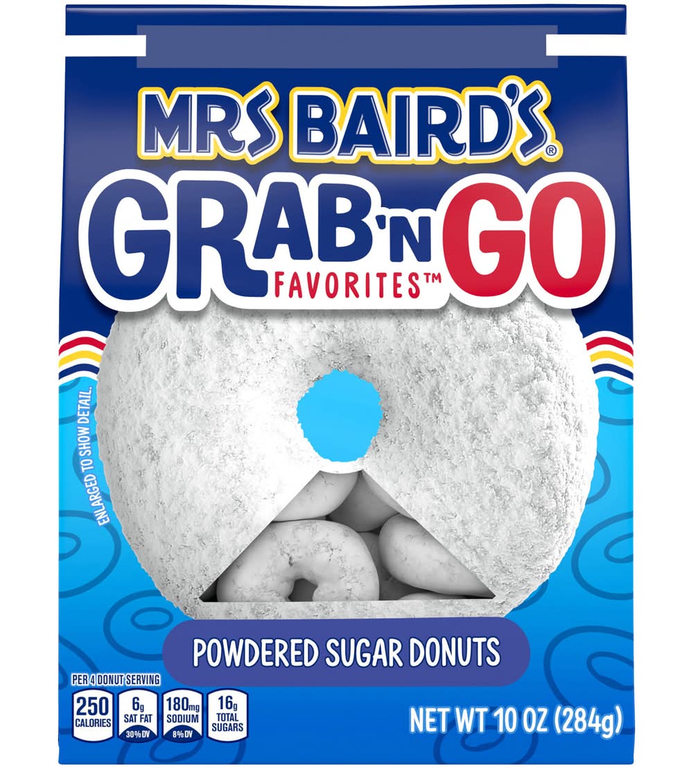 Mrs. Baird's Grab N Go Donuts, Powdered Sugar (10 oz)