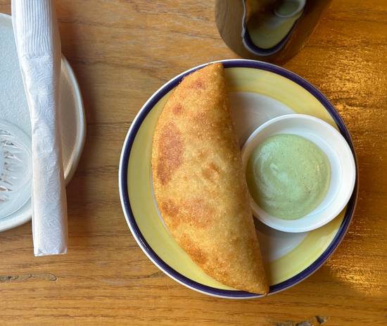 CORN FLOUR AND WHEAT FLOUR FRIED EMPANADA FILLED WITH SUTED SPINACH AND QUESO GUAYANES CONTAINS PINE NUTS