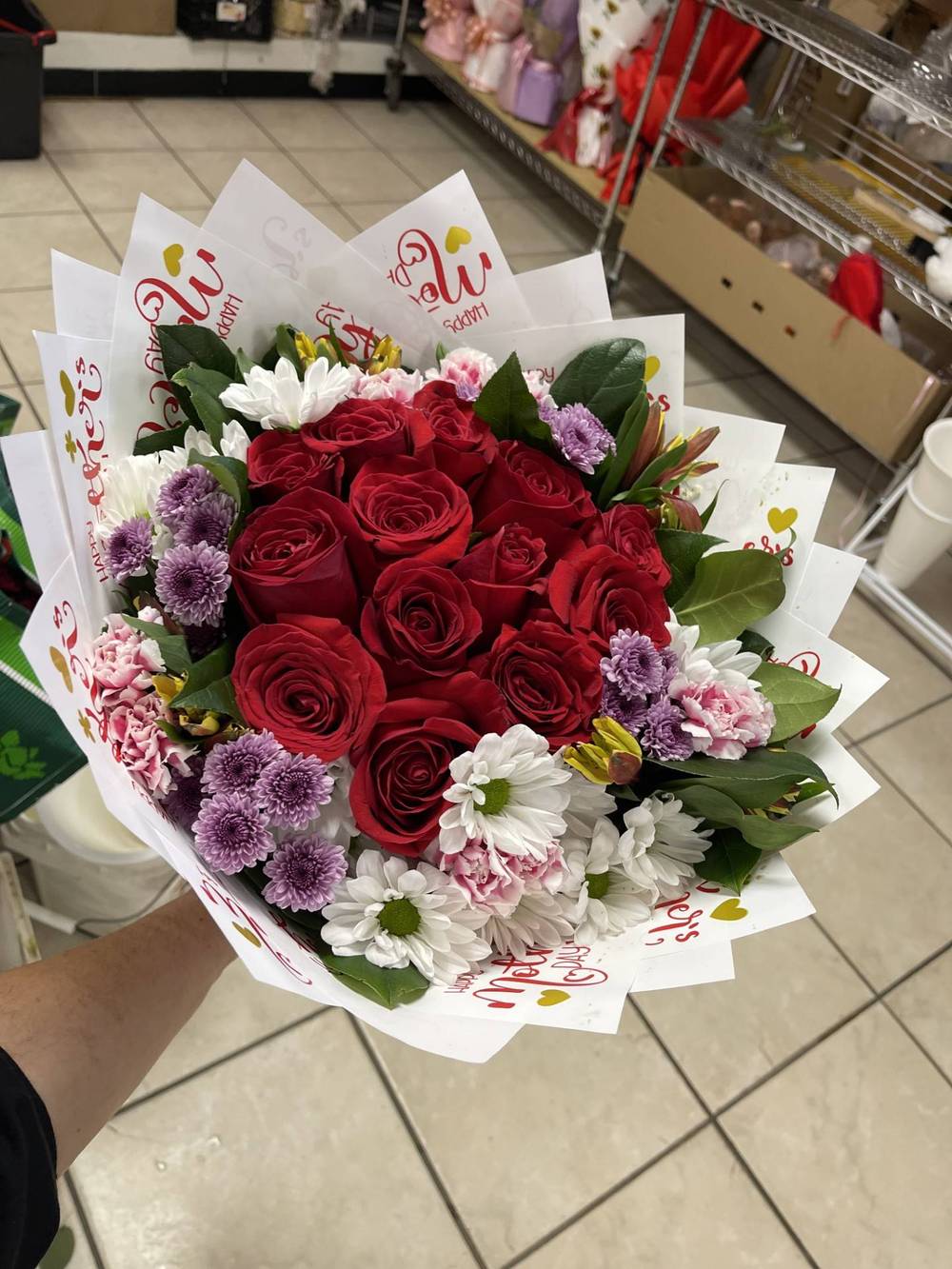 12 roses with mixed flowers