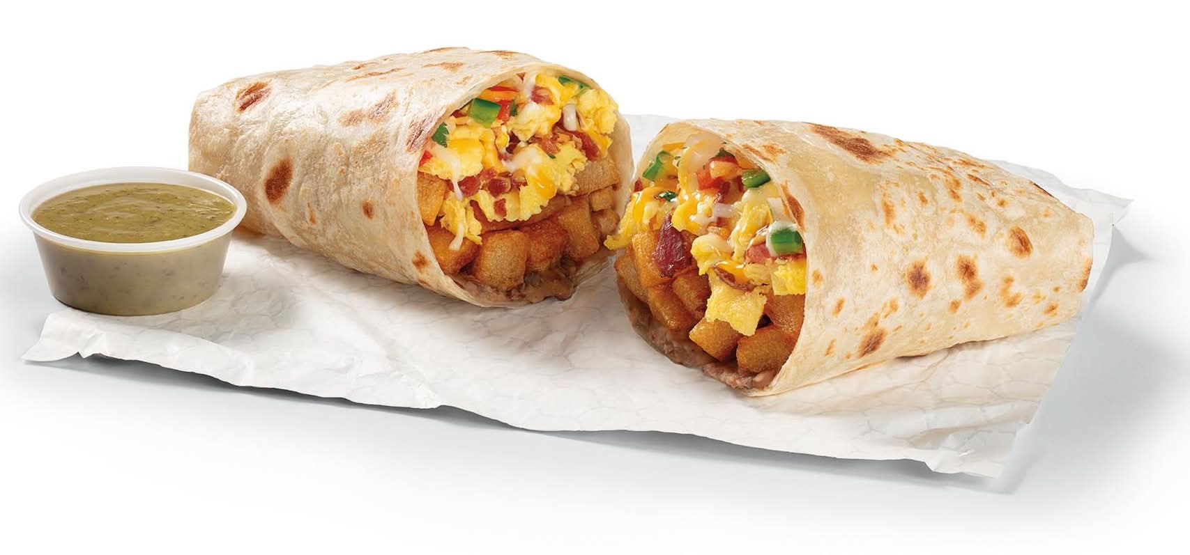 A warm, freshly-made 12" flour tortilla overflowing with your favorite protein, diced potatoes, refried beans, shredded cheese and your choice of flavorful toppings—finish with a bold splash of your go-to salsa.