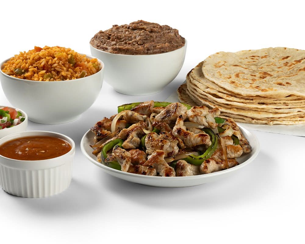 It’s a fajita fiesta! Enjoy a generous spread of beef or chicken fajitas, soft flour or corn tortillas, crowd-pleasing sides, and all the vibrant toppings. Feeds 2 - 4.