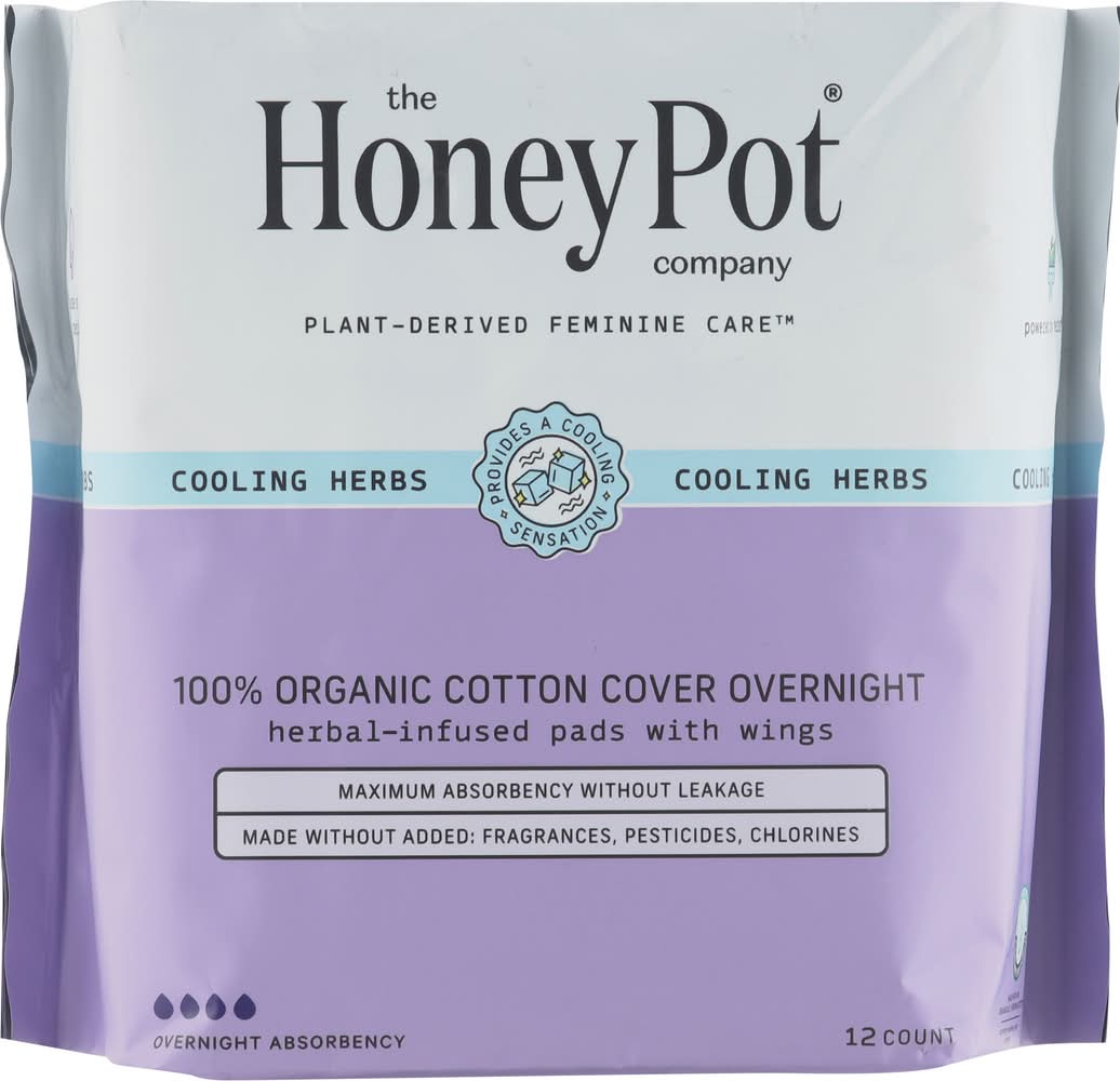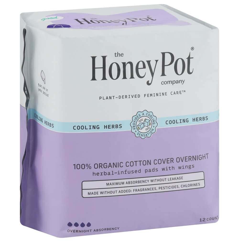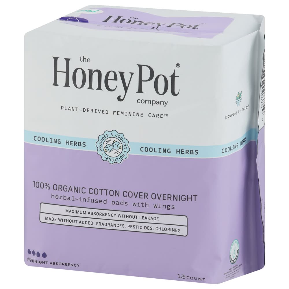 The Honey Pot Herbal-Infused Overnight Pads With Wings, Mint-Lavender-Aloe (12 ct)