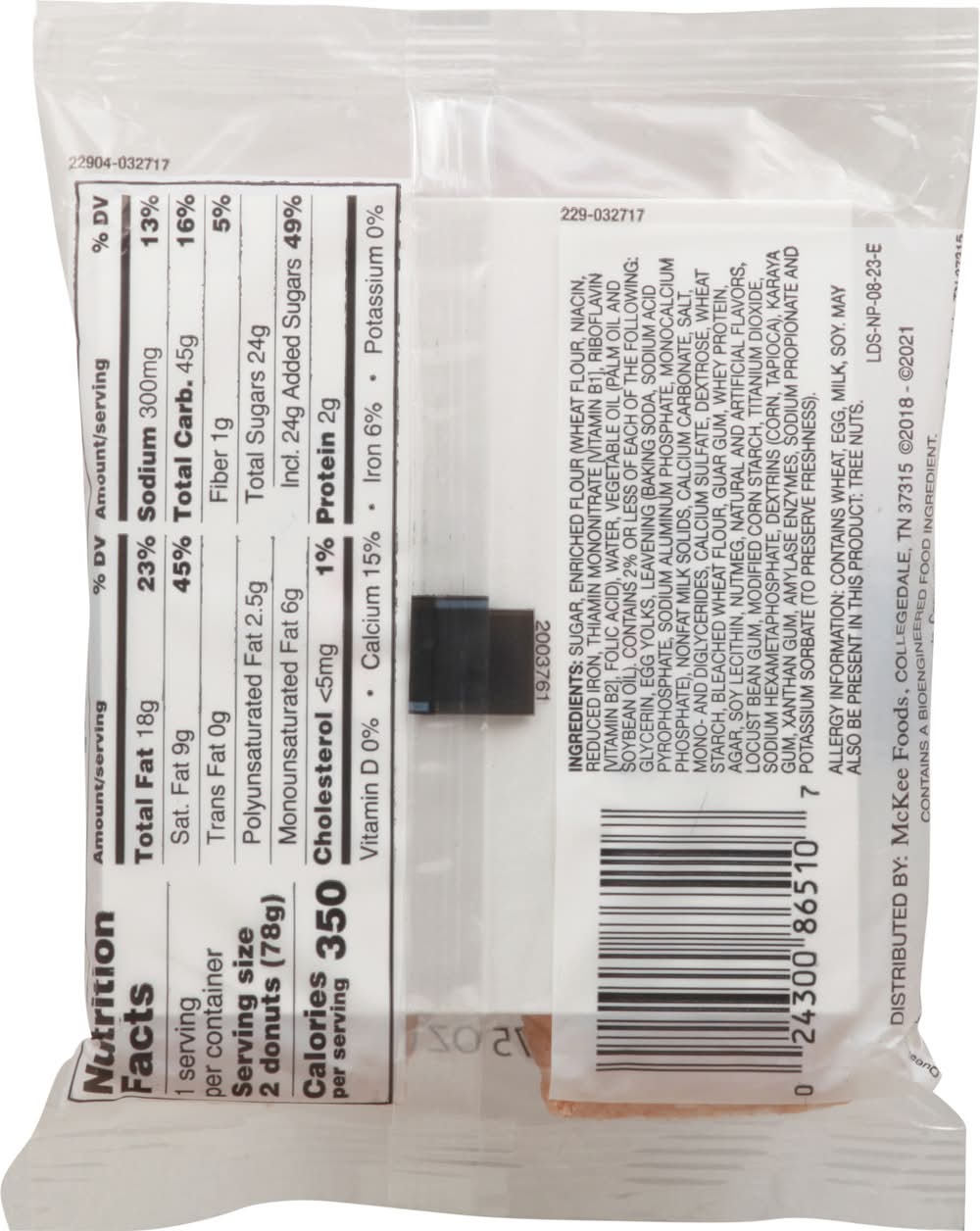 Contains a bioengineered food ingredient. Delicious cake style. Mckee Foods, Collegedale, TN, 37315