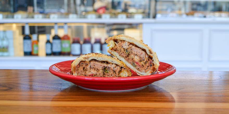Hot and Ready Only. Post Oak shredded Pork in a homemade green chile and white cheddar sauce.