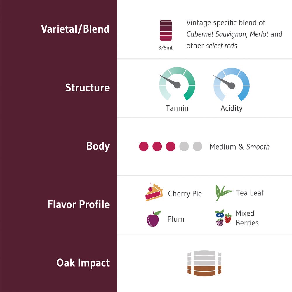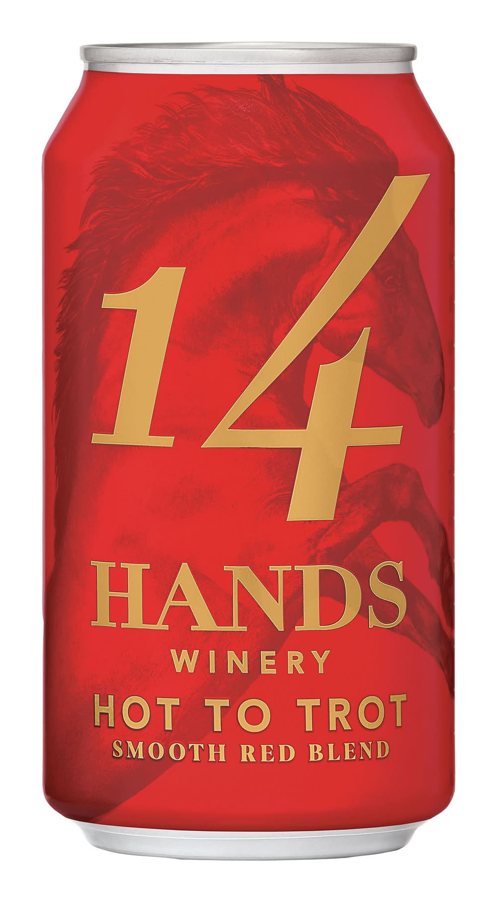Bring a unique, polished red wine to your table with 14 Hands Hot to Trot Smooth Red Blend Wine. This polished red blend wine offers aromas of cherry, red currant and tea. A medium bodied, slightly dry red wine with flavors of cherry pie, ripe berries and plums with subtle notes of baking spice with a persistent finish. 14 Hands Hot to Trot Red Blend Wine consists predominantly of Merlot blended with smaller varietals of Syrah and Cabernet Sauvignon, making it a deliciously complex can of wine. Made in Washington State’s renowned Columbia Valley, this red blend wine brings the spirit of the wild in each drop. This delicious red wine pairs beautifully with BBQ Pork, grilled portabella mushrooms, lasagna and hearty cheeses. Add an adventurous flair to drinks with friends or to a quiet dinner when you open a can of this 14 Hands wine. One 355 mL can of 14 Hands Hot to Trot Red Blend Wine equals two 6 ounce glasses of wine and has 13.5% ABV. Inspired by the untamed spirit of the wild horses that once freely roamed eastern Washington, 14 Hands wine represents a reconnection to our wild roots and endless thirst for excitement and fun. The loamy sand and gravel soils of the Columbia Valley require a strong and determined grapevine, and our vineyards revel this world-class terroir. With the fruit from these hardy vines, we handcraft big, fruit-forward reds and crisp, juicy whites. Like the untamed horses we honor with our name, our wild and wonderful wines pack a lot of character into each bottle. • Brand: 14 hands • Alcohol by volume: 14.5%