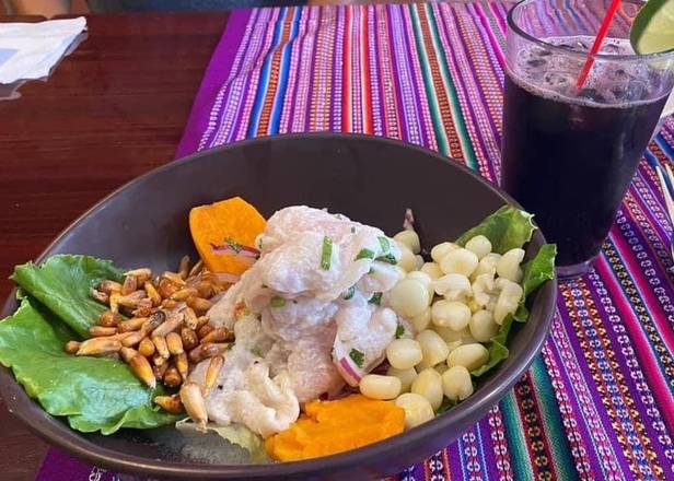 Dice fish cooked in lime juice with onions and spices.